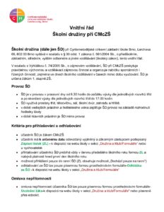 Vnitřní řád školní družiny při CMcZŠ 2025